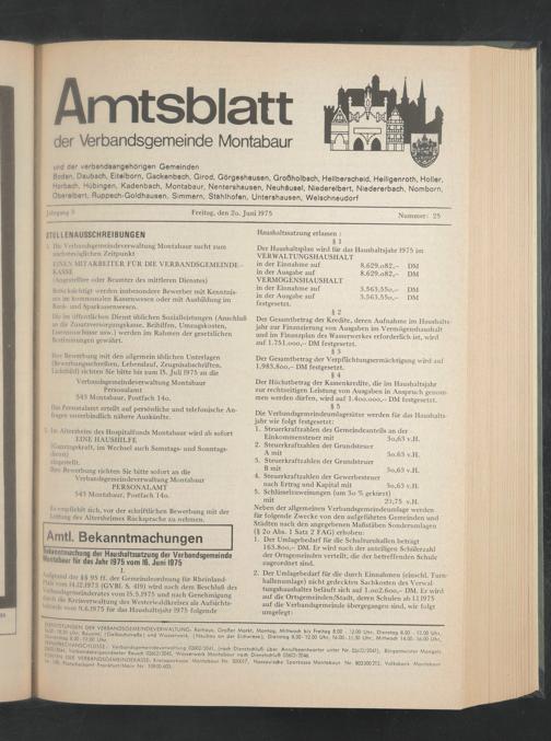 Amtsblatt der Verbandsgemeinde Montabaur und der verbandsangehörigen Gemeinden. ...
