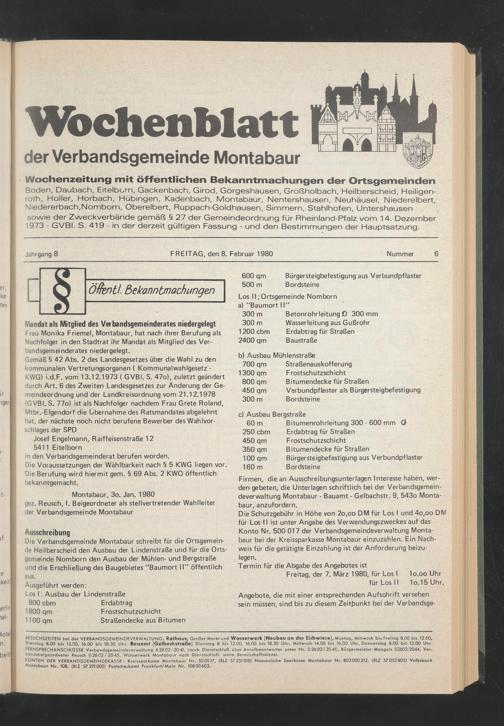 Wochenblatt der Verbandsgemeinde Montabaur. 1980-