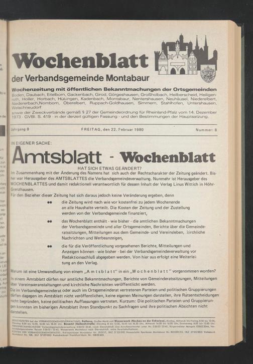 Wochenblatt der Verbandsgemeinde Montabaur. 1980-