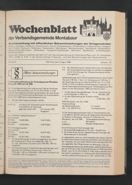 Wochenblatt der Verbandsgemeinde Montabaur. 1980-